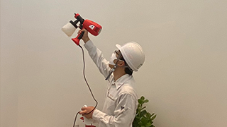 お部屋の壁・天井に噴霧施工するだけでウィルスや雑菌を空気触媒で不活性化。抗ウイルス・ノロウイルス抑剤・抗菌・安全性・防カビ・防臭の効果があります。
